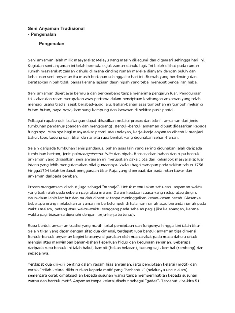 Seni Anyaman Tradisional Pengenalan Pengenalan Pdf